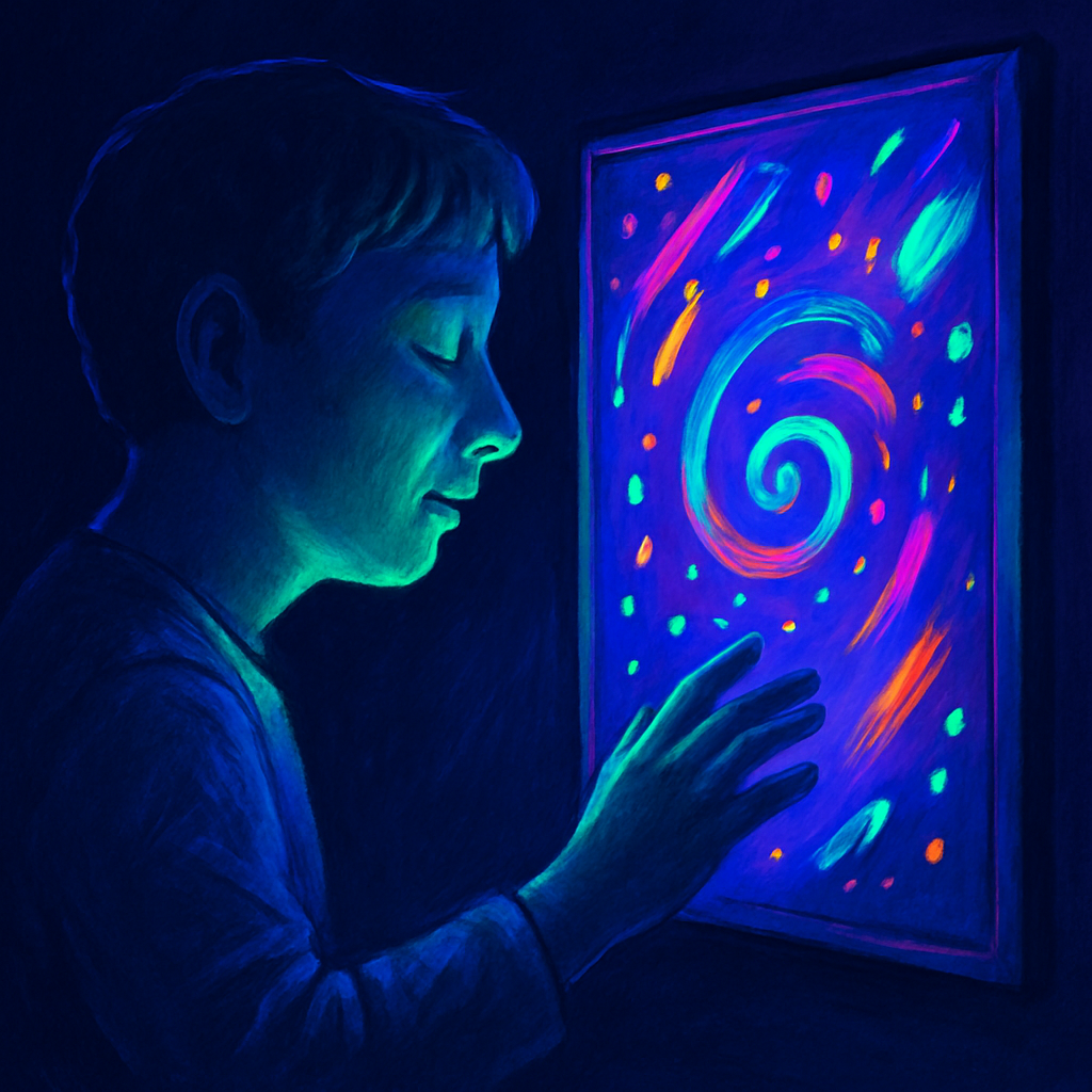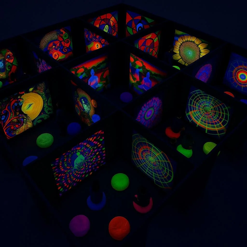 FluoreSense is designed to be welcoming and inclusive for everyone. Our glowing artwork and installations are created with accessibility in mind, especially for people with visual impairments. Ultra-bright fluorescent colors under UV light provide strong contrast, helping shapes and patterns become more visible.